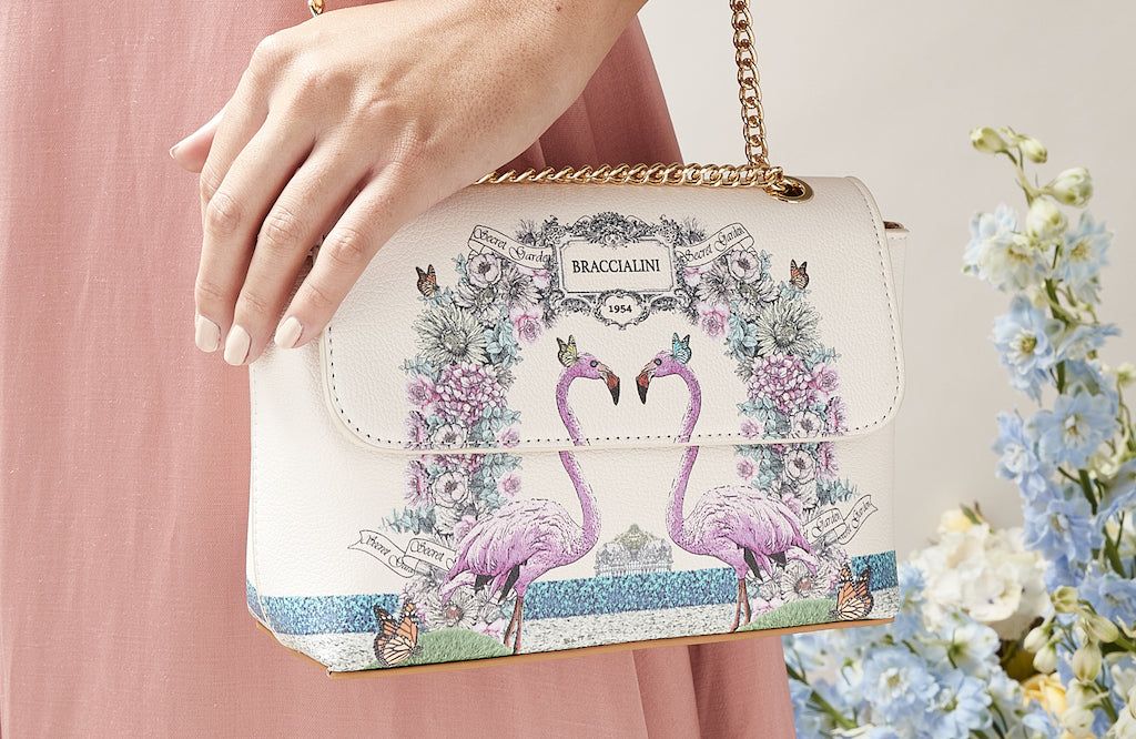 Every bag by Braccialini guarantees someone stopping you in the street to ask, ‘where did you buy that fabulous handbag?’ This colourful shoulder bag is no exception, featuring two flamingos and various shades of pastels. Its interchangeable gold chain creates an element of luxury, pairing wonderfully with bright whites this summer or with black that allows your new bag to shine. Only available in a very limited run, don’t let this style slip through the cracks.